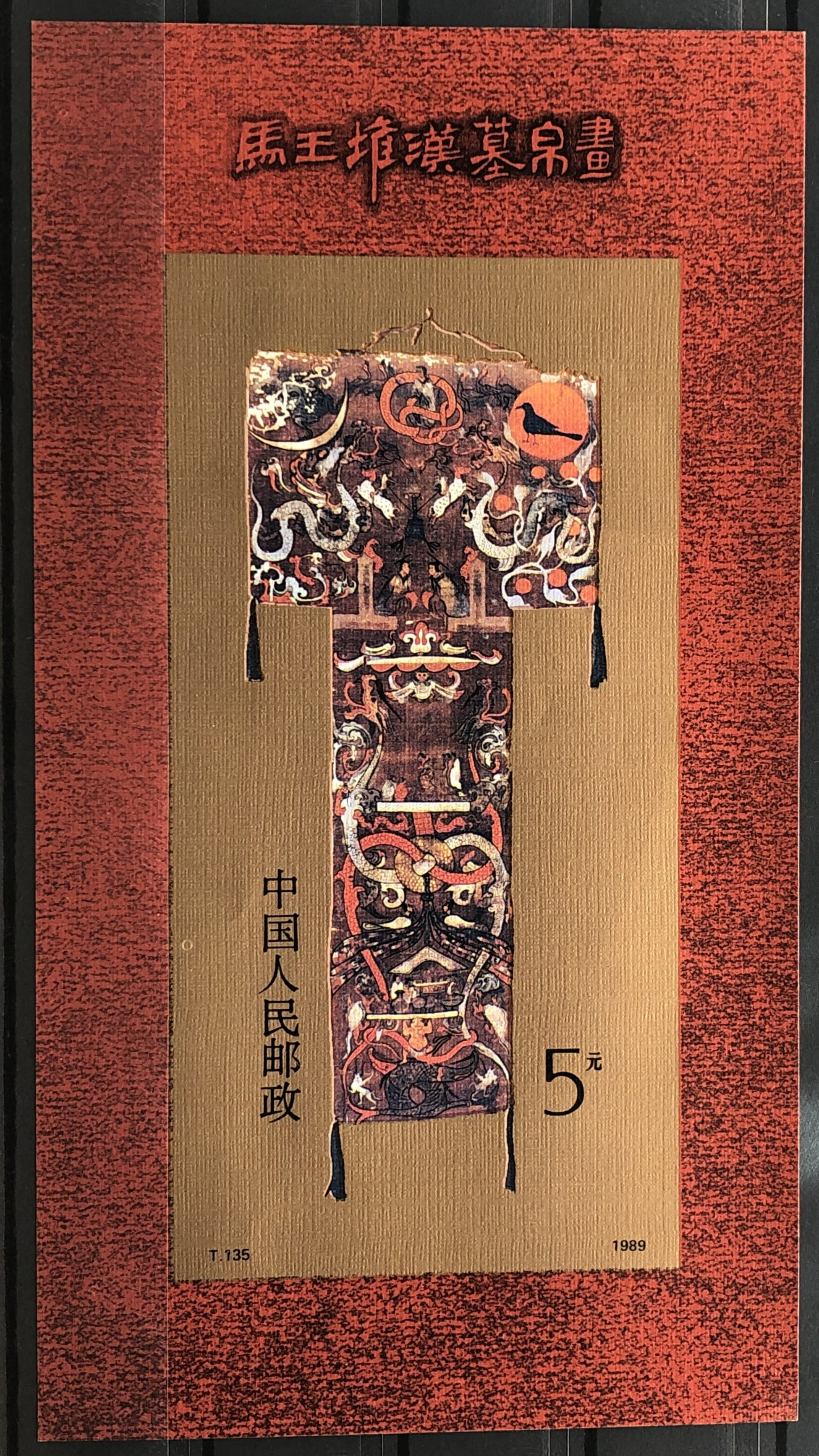 Silk painting excavated from Han Tomb No. 1 at Mawangdui, Changsha, 1989. Souvenir sheet.