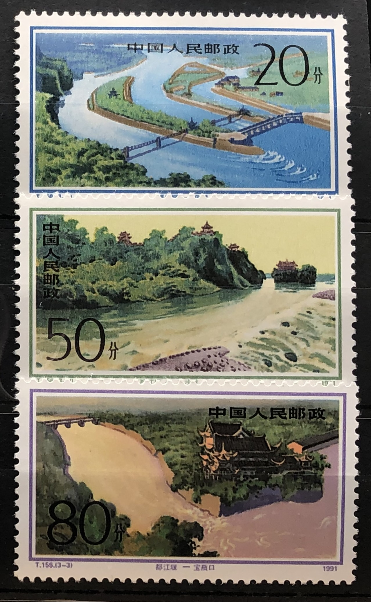 Dujiangyan Irrigation Project, 1991. Complete set of 3.