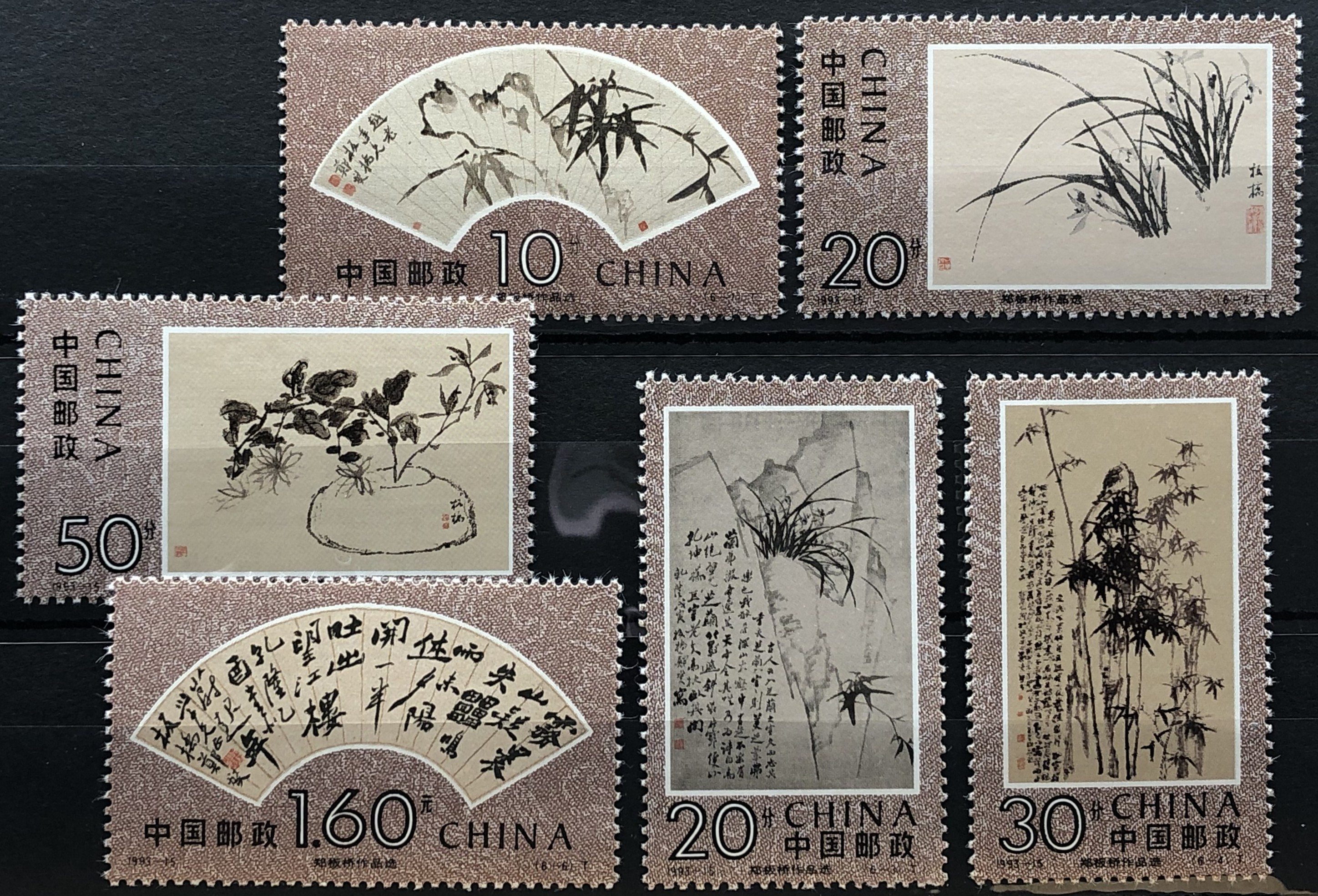 Paintings by Zheng Banqiao, 1993. Complete set of 6.