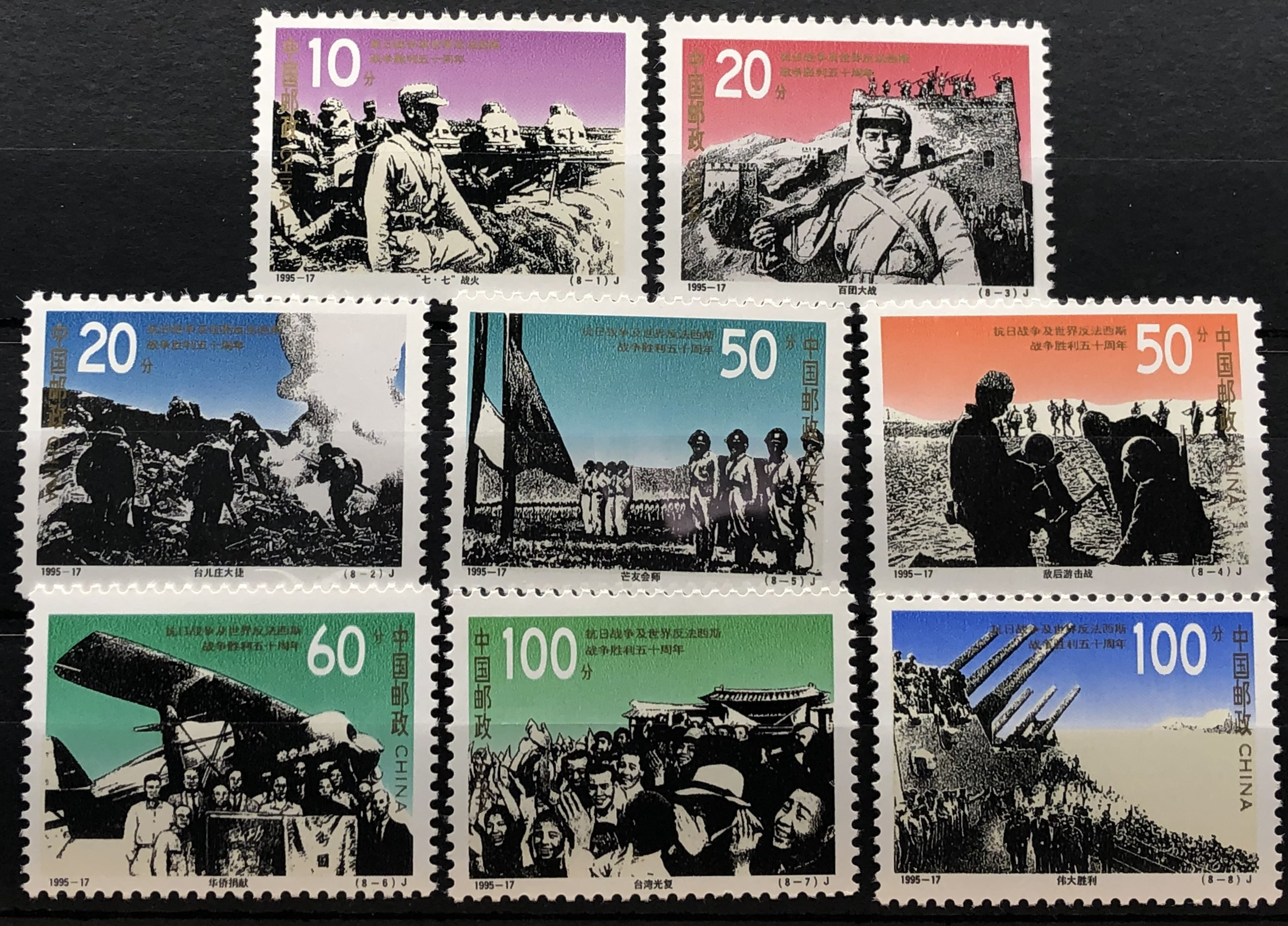 End of World War II, 50th anniversary, 1995. Complete set of 8.