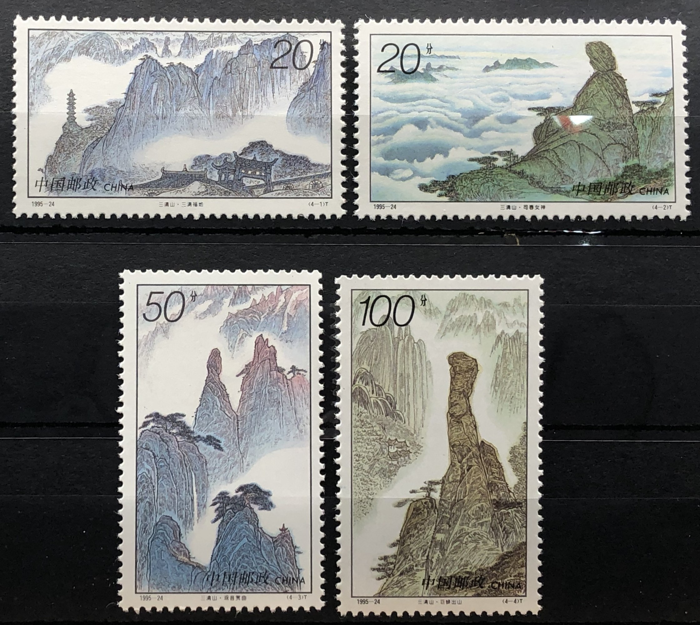 Sanqing Mountains, Good Fortune Land, Sichun Goddess, Bodhisattva Enjoyes Muic, Huge Boa out of Mountain, 1995. Complete set of 4.