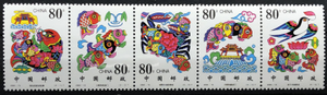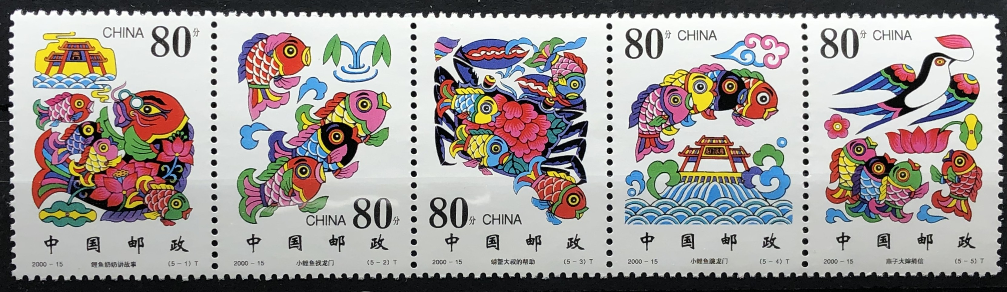 Small carp leap through dragon gate legend, 2000. Strip of 5.