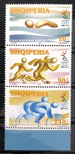 2001 Mediterranean Games, Tunis, 2001. Vertical strip of 3.