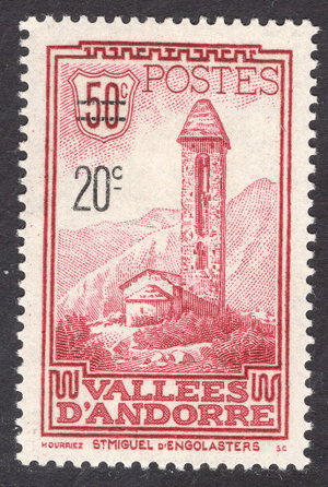 Andorra-French Scott 64. Unused. Very very trivial thin. 2