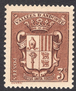 Andorra-French Scott 67. Mint. Never hinged. 3