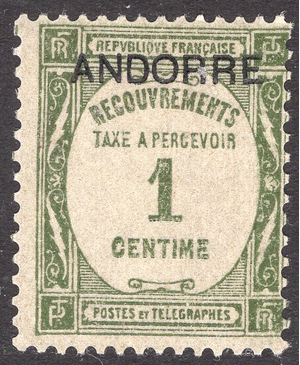 Andorra-French Scott J9. Mint. Never hinged. 1