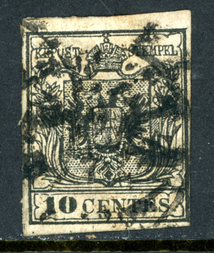 Austria 1850 Lombardy Venetia 10¢ Black Scott #3 VFU I704
