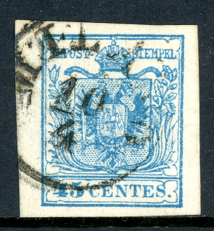 Austria 1850 Lombardy Venetia 45¢ Blue Type 3 Scott #6 VFU I714