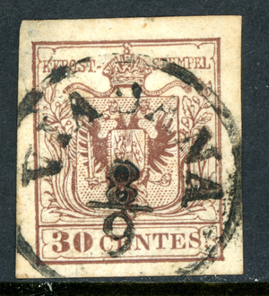 Austria 1853 Lombardy Venetia 30¢ Red Brown Type 2 Scott #5 VFU I712