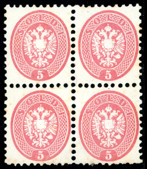 Austria 1863 First Issues 5 Soldi Rose Perf 9½ Block Scott #22 MNH I734