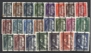Scott #405-27: 1945 Overprints Set Centering & Condition: Mint. Fresh. Fine-Very Fine set. Reverse (Gum Side): Original gum. Never Hinged. Faults / Imperfections: None The item pictured is the actual item you are purchasing, unless otherwise noted. I also offer an interest-free layaway plan. Ask me about it!" All items will be mailed a day or two after payment is received. ![]() ![]() ![]() --------------------------------------------------------------------------------