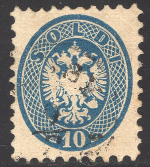 Austria-Lombardy-Venetia Scott 18. Used. Perforation 9.5. Reprint. No watermark.