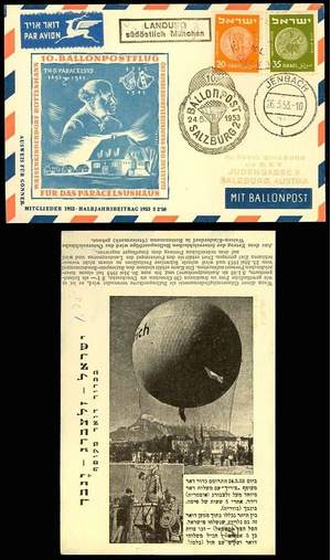 Austrian balloon flight card w/ Israeli postage. HARD TO FIND! - Stuart Katz