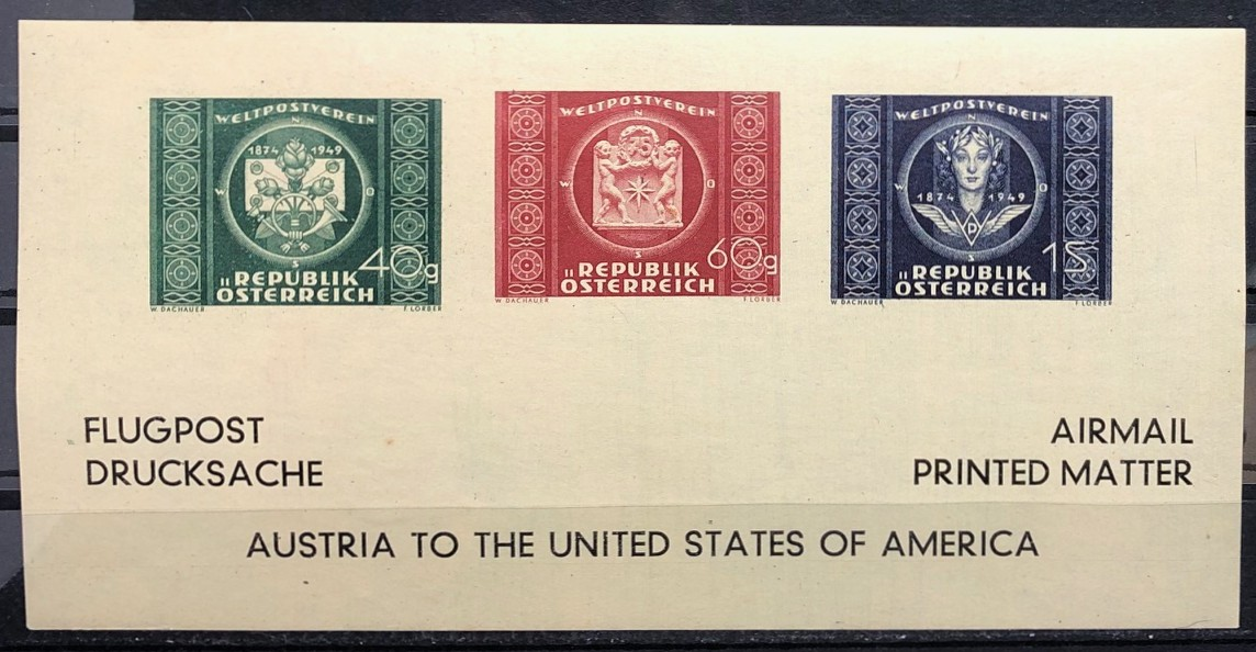 UPU, 75th Anniversary, 1949. Airmail printed matter.