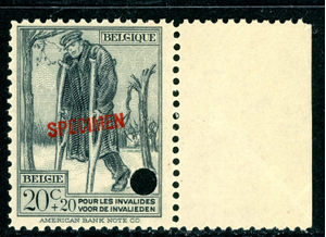 Belgium 1923 Wounded Veterans Semipostal Scott #52 SPECIMEN MNH L993