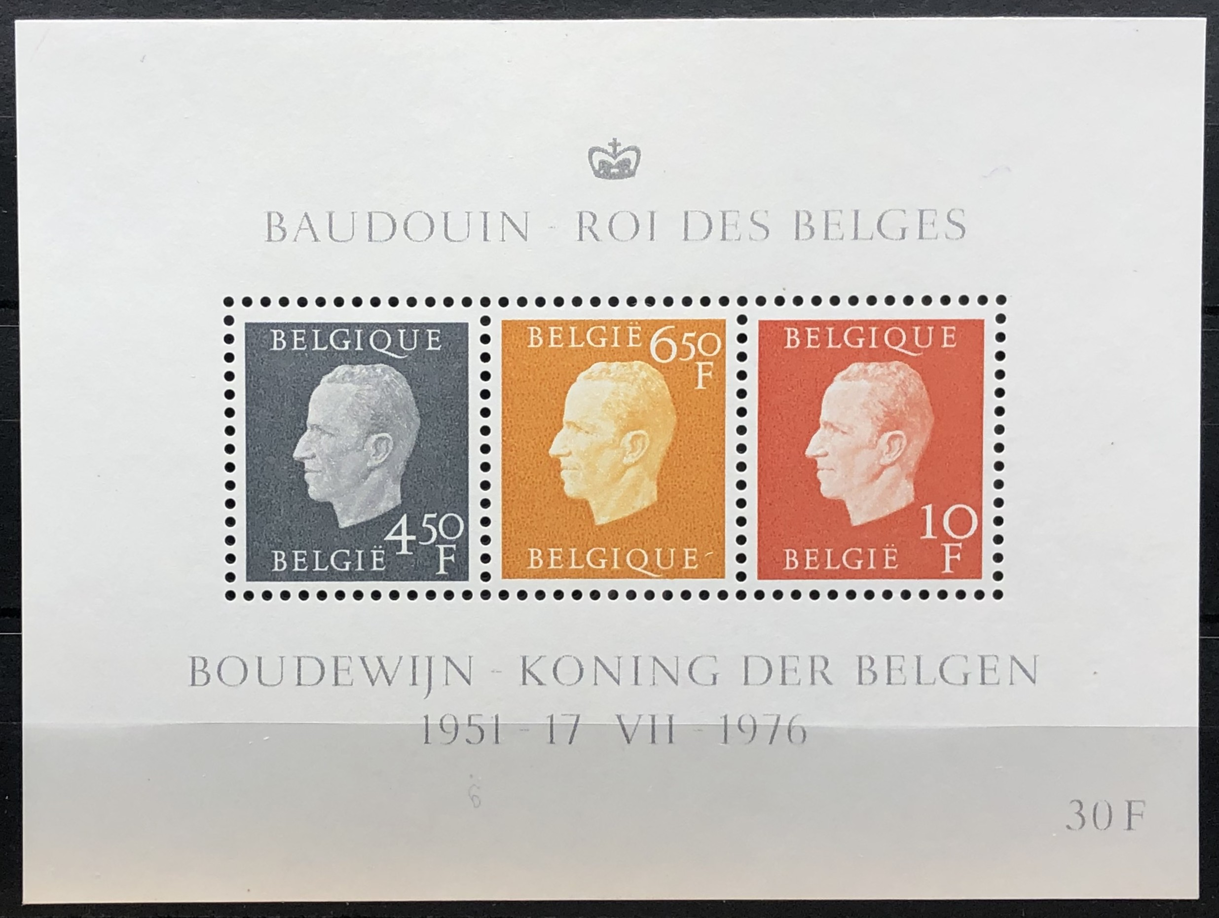 King Baudouin, 1976. Sheet of 3.