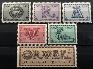 Orval issue with surtax added for restoration of Orval Abbey, 1943. Complete set of 6.