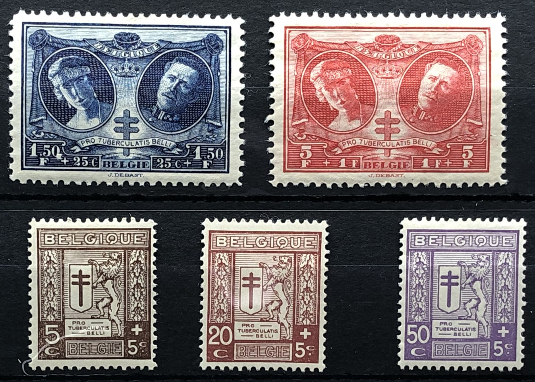 Lion and Cross of Lorraine, Queen Elisabeth and King Albert, 1926. Complete set of 5.