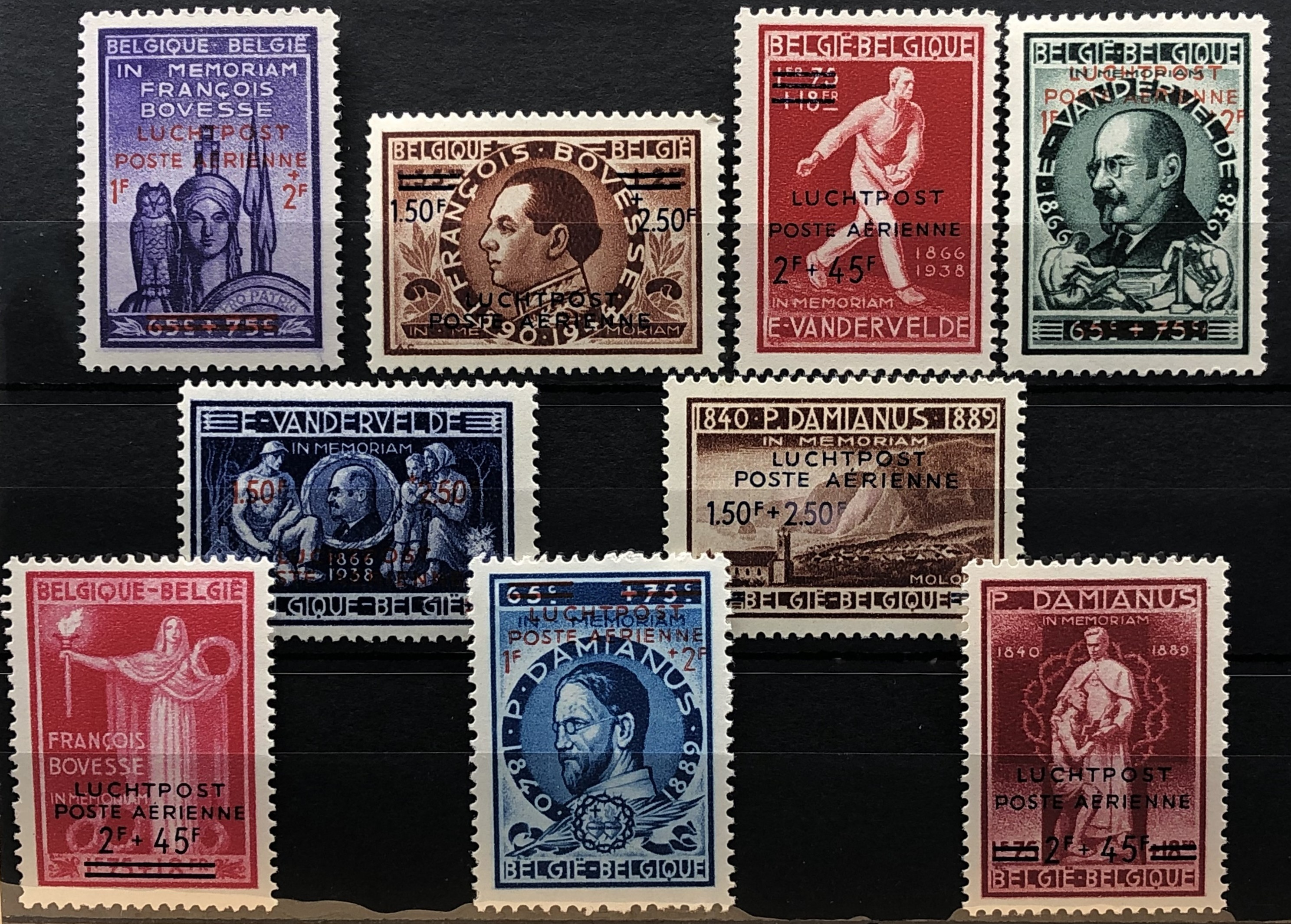 Air post semi-postal issue of 1947. Type II only. Set of 9.