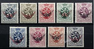 Official stamps, overprint on regular issues of 1929-30. Complete set of 9.