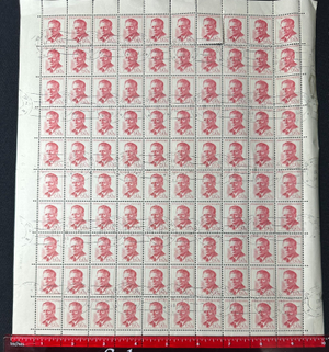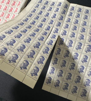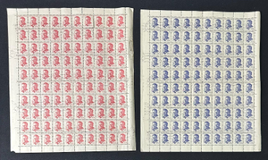 This listing is for a bulk lot of 2 full sheets of vintage Czechoslovakian postage stamps issued in 1958. Each sheet contains 100 stamps. The blue stamps have the number 30h (haleru), the red stamps have the number 60h.