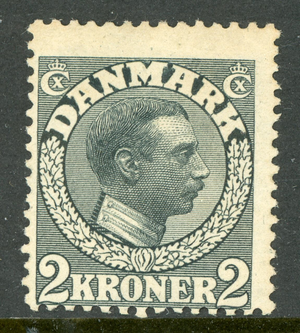 Denmark 1913 Christian X 2 Krone Gray Perf 14x14½ Scott #133 Mint B312