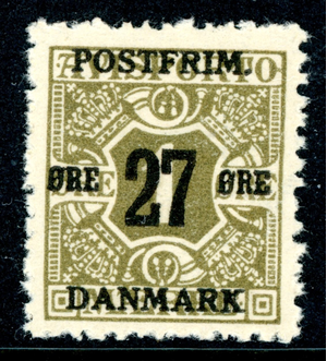 Denmark 1918 Definitive 27o/1o Olive Perf 13 Scott #138 MNH K511