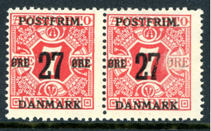 Denmark 1918 Definitive 27o/7o Rose Perf 14x14½ Scott #147v Pair Mint K629