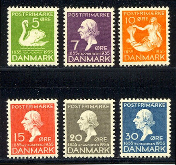 Scott #246-51: 1935 Hans Christian Andersen Set Centering & Condition: Mint. Fresh. Fine-Very Fine set. Reverse (Gum Side): Original gum. Never Hinged. Faults / Imperfections: None The item pictured is the actual item you are purchasing, unless otherwise noted. I also offer an interest-free layaway plan. Ask me about it!" All items will be mailed a day or two after payment is received. -------------------------------------------------------------------------------- Please click any of the following to read: |