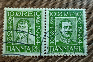 Denmark stamps from 1924 honoring the 300th anniversary of the Danish postal Service.