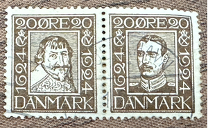 Kings Christian X and Christian IV se-tenant. 20 ore brown
