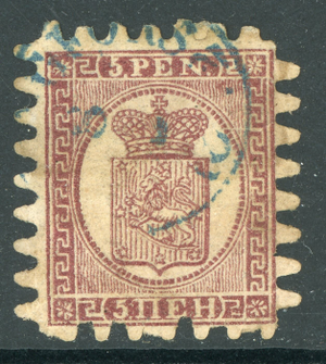 Finland 1873 Serpentine Definitive 5 Pen Purple Brown Scott #8 VFU H45