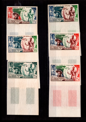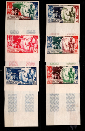 1949 French Colonies UPU Issue, Mint NH, Imperf, Scott $137.25 for perforated