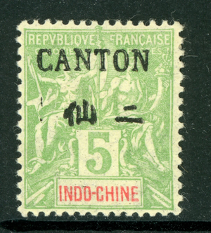 China 1903 French Colony Canton 5¢ Yellow Green Scott # 18 Mint VARIETY S965