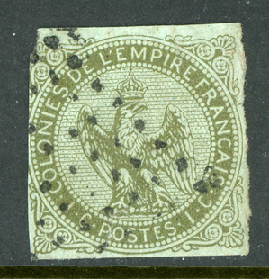 France 1862 Colonies General Issues 1¢ Olive Green Scott #1 VFU M498
