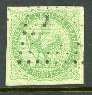 France 1865 Colonies General Issues 5¢ Yellow Green Scott #2 VFU M500