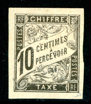 France 1884 Colonies General Issues 10¢ Black Postage Due Scott #J6 Mint G84