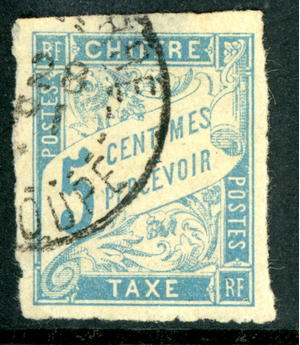 France 1894 Colony General Issues Postage Due 5¢ Blue Imperf Sc #J15 VFU L86