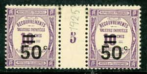 France 1925 Due 50¢/10¢ Lilac Millesime Sc# J54 Mint H486