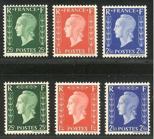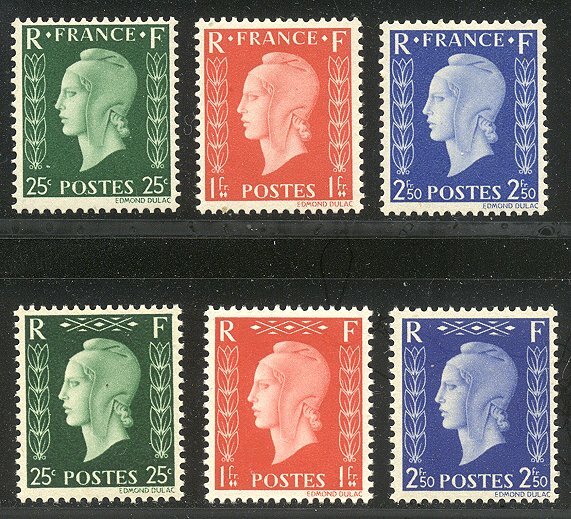 Scott # N/L: 1945 Unissued Marianne Sets Centering & Condition: Mint. Fresh. Fine-Very Fine sets. Reverse (Gum Side): Original gum. Never Hinged. Faults / Imperfections: None The item pictured is the actual item you are purchasing, unless otherwise noted. I also offer an interest-free layaway plan. Ask me about it!" All items will be mailed a day or two after payment is received. --------------------------------------------------------------------------------
