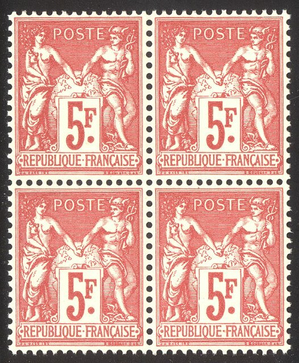 Scott #226b: 1925 5fr Carmine Centering & Condition: Mint. Fresh. Very Fine Block from the Souvenir Sheet. Reverse (Gum Side): Original gum. Never Hinged. Faults / Imperfections: None The item pictured is the actual item you are purchasing, unless otherwise noted. I also offer an interest-free layaway plan. Ask me about it!" All items will be mailed a day or two after payment is received. --------------------------------------------------------------------------------