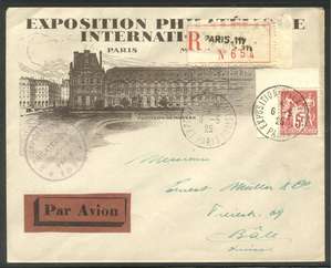 Scott #226b: 1925 5fr Carmine Centering & Condition: Very pretty registered cover from the 1925 Paris Expo to Basel Reverse (Gum Side): N/A Faults / Imperfections: None The item pictured is the actual item you are purchasing, unless otherwise noted. I also offer an interest-free layaway plan. Ask me about it!" All items will be mailed a day or two after payment is received. --------------------------------------------------------------------------------
