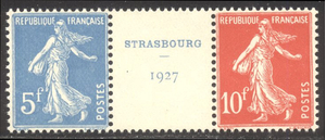 Scott #241a-b: 1937 Strasbourg Pair Centering & Condition: Mint. Fresh. Fine-Very Fine pair from the souvenir sheet. Reverse (Gum Side): Original gum. Never Hinged. Faults / Imperfections: None The item pictured is the actual item you are purchasing, unless otherwise noted. I also offer an interest-free layaway plan. Ask me about it!" All items will be mailed a day or two after payment is received. --------------------------------------------------------------------------------