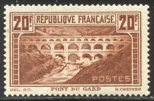Scott #253: 1929 20fr Pont du Gard, Type I Centering & Condition: Mint. Fresh. Very Fine. Reverse (Gum Side): Original gum. Never Hinged. Small handstamp. Faults / Imperfections: None The item pictured is the actual item you are purchasing, unless otherwise noted. I also offer an interest-free layaway plan. Ask me about it!" All items purchased will be mailed a day or two after payment is received. --------------------------------------------------------------------------------