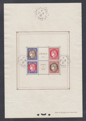 France 329 PEXIP Souvenir Sheet, Used, a couple light bends at bot, Scott $300
