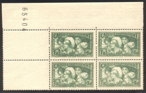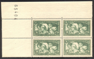 Scott #B38: 1931 1.50fr + 3.50fr Green Centering & Condition: Mint. Fresh. Very Fine and CHOICE Corner Margin Block. Reverse (Gum Side): Original gum. Never Hinged. Faults / Imperfections: None The item pictured is the actual item you are purchasing, unless otherwise noted. I also offer an interest-free layaway plan. Ask me about it!" All items will be mailed a day or two after payment is received. --------------------------------------------------------------------------------