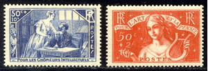 Scott #B42-43: 1935 Intellectuals Set Centering & Condition: Mint. Fresh. Very Fine set. Reverse (Gum Side): Original Gum. Never Hinged. Faults / Imperfections: None The item pictured is the actual item you are bidding on, unless otherwise noted. All items will be mailed a day or two after payment is received. -------------------------------------------------------------------------------- Please click any of the following to read: |