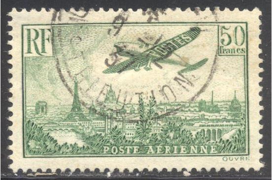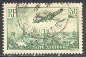 Scott #C14: 1936 50fr Plane Over Paris Centering & Condition: Used. Very Fine. Reverse (Gum Side): N/A Faults / Imperfections: None The item pictured is the actual item you are purchasing, unless otherwise noted. I also offer an interest-free layaway plan. Ask me about it!" All items purchased will be mailed a day or two after payment is received. --------------------------------------------------------------------------------