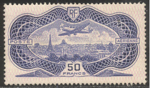 Scott #C15: 1936 50fr Plane Over Paris Centering & Condition: Mint. Fresh. Very Fine. Reverse (Gum Side): Original gum. Lightly Hinged. Faults / Imperfections: None The item pictured is the actual item you are purchasing, unless otherwise noted. I also offer an interest-free layaway plan. Ask me about it!" All items will be mailed a day or two after payment is received. --------------------------------------------------------------------------------