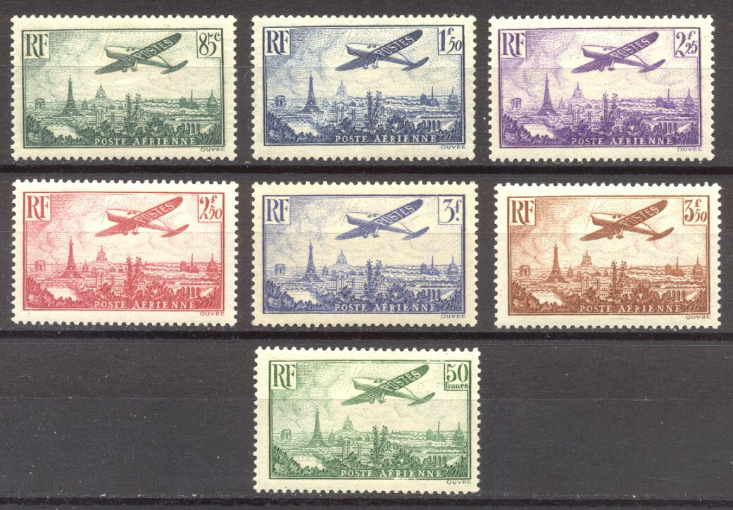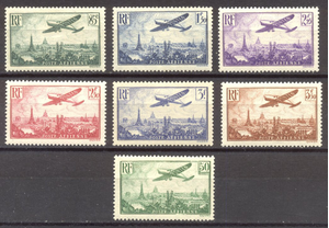 Scott #C8-14: 1936 Plane Over Paris Set Centering & Condition: Mint. Fresh. Very Fine set. Reverse (Gum Side): Original gum. Lightly Hinged. Faults / Imperfections: None The item pictured is the actual item you are purchasing, unless otherwise noted. I also offer an interest-free layaway plan. Ask me about it!" All items will be mailed a day or two after payment is received. --------------------------------------------------------------------------------
